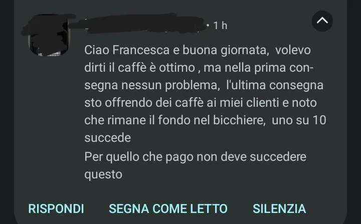 Non posso che elogiare il caffè che ho acquistato qui. Ogni chicco è una scoperta di sapori intensi e autentici. Il servizio clienti è stato impeccabile, sempre pronto a rispondere alle mie domande. La mia giornata inizia sempre con una tazza di puro piacere!